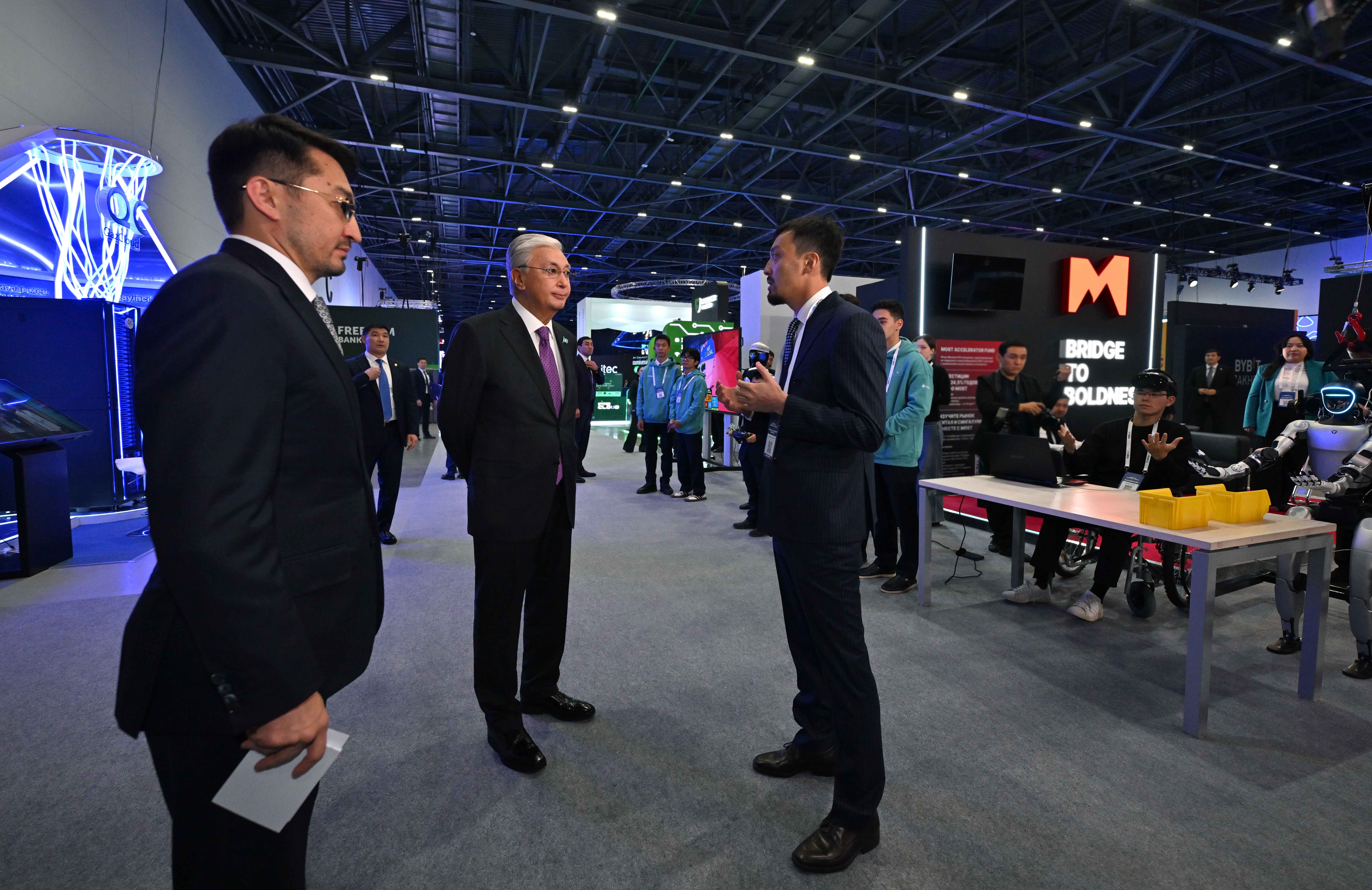Президент Касым-Жомарт Токаев ознакомился с экспозицией цифровых разработок, представленной в рамках заседания Совета по развитию искусственного интеллекта.