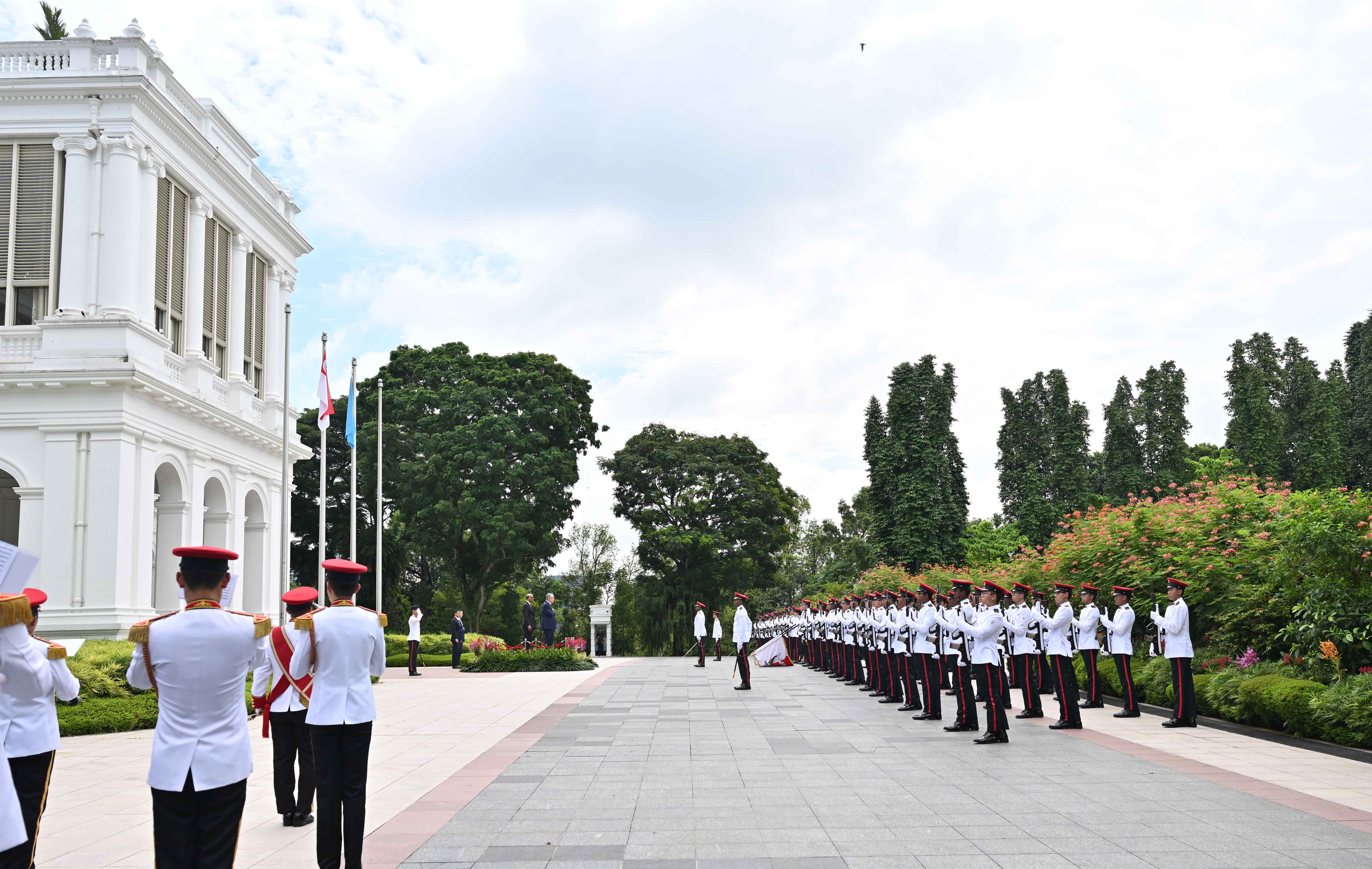 Переговорам предшествовала официальная церемония встречи. Прозвучали государственные гимны Казахстана и Сингапура, лидеры двух стран приняли приветственный рапорт начальника роты почетного караула. Касым-Жомарт Токаев и Тарман Шанмугаратнам представили друг другу членов официальных делегаций. В холле Президентского дворца Глава нашего государства оставил памятную запись в Книге почетных гостей.