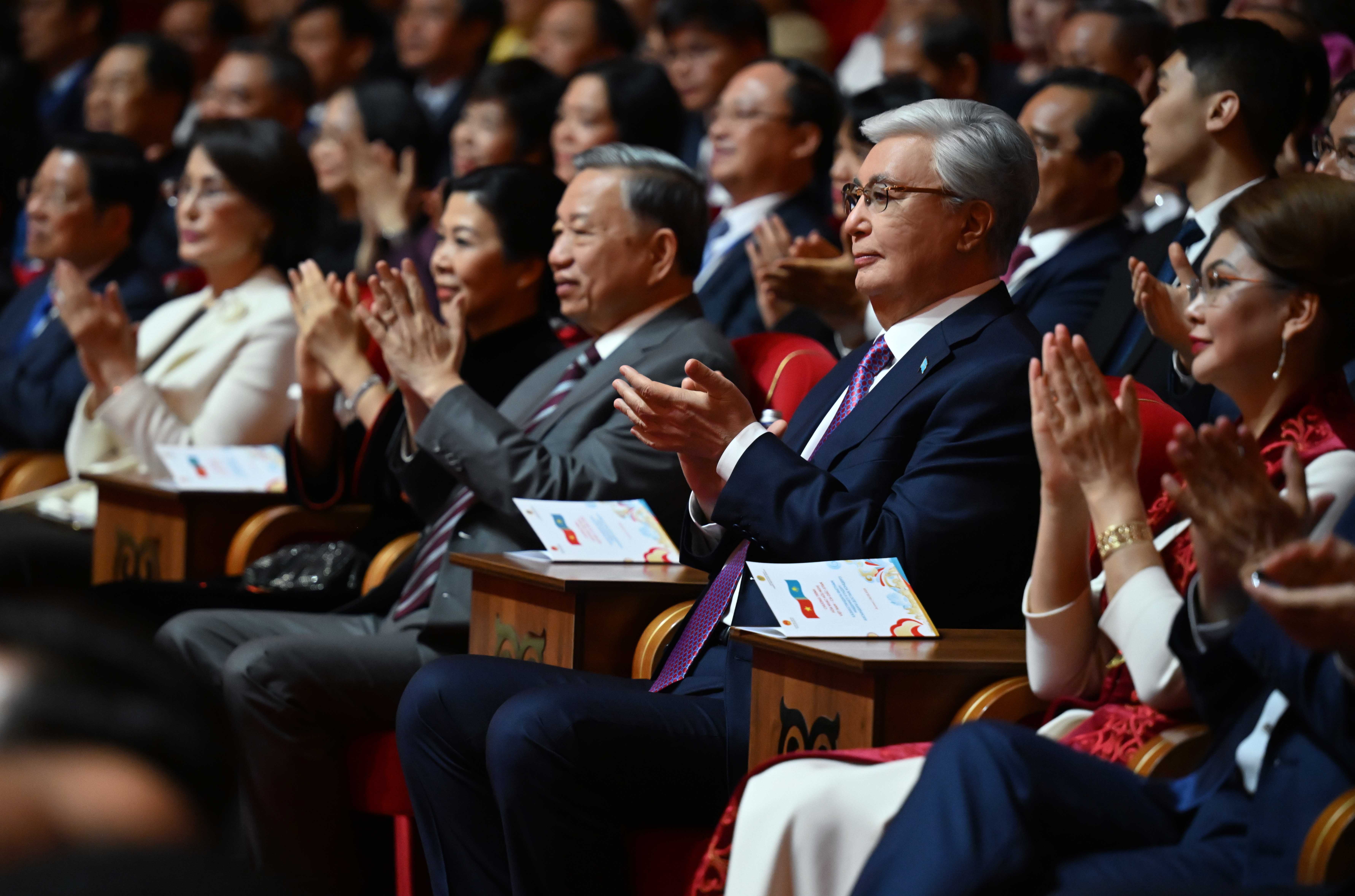 На сцене театра «Астана Опера» перед почетными гостями и столичной публикой выступили Ханойский филармонический оркестр, симфонический оркестр театра «Астана Балет», хор Государственного театра оперы и балета «Астана Опера», а также выдающиеся представители казахского и вьетнамского искусства.