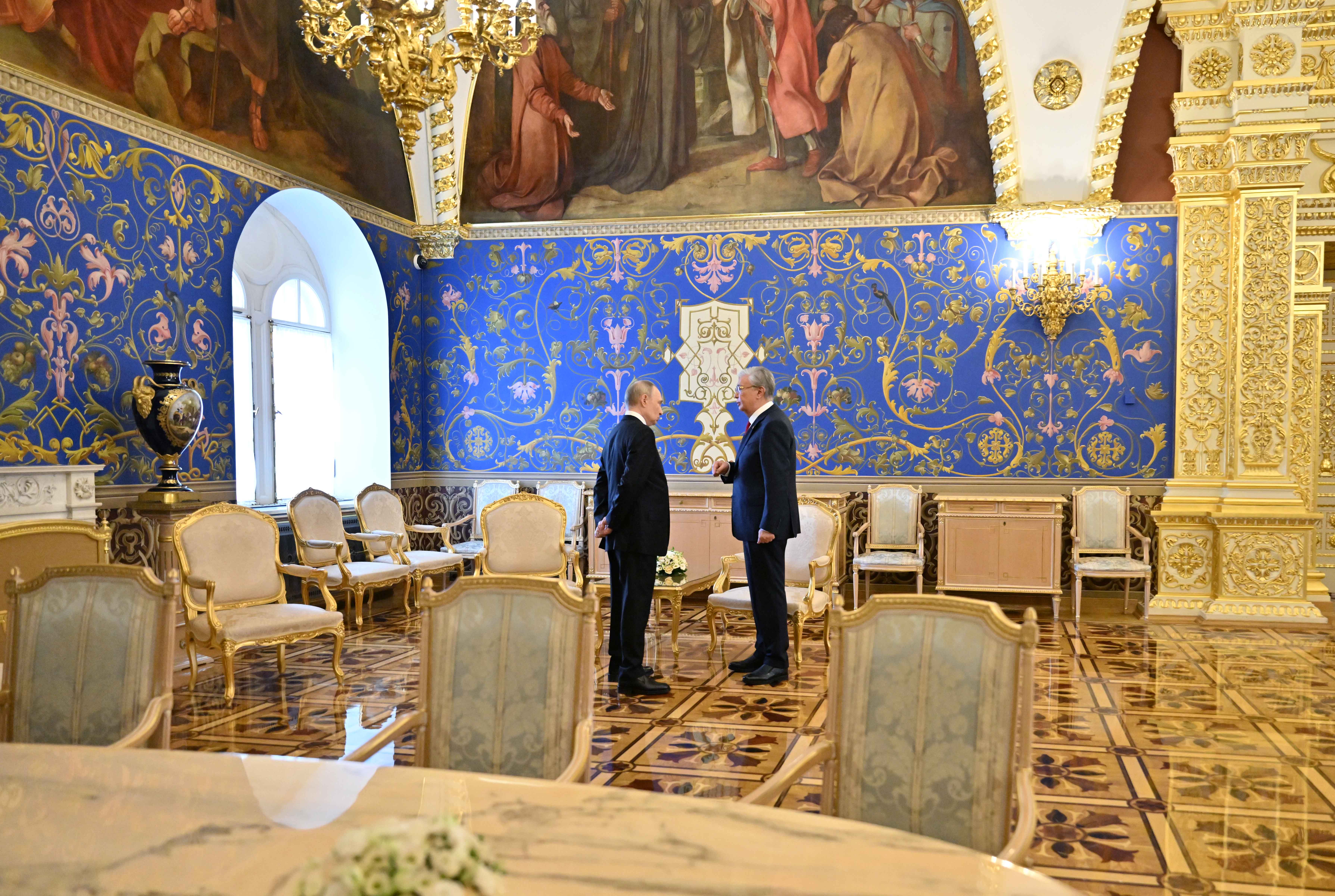 По завершении торжественных мероприятий состоялась краткая беседа Главы государства с Президентом России.