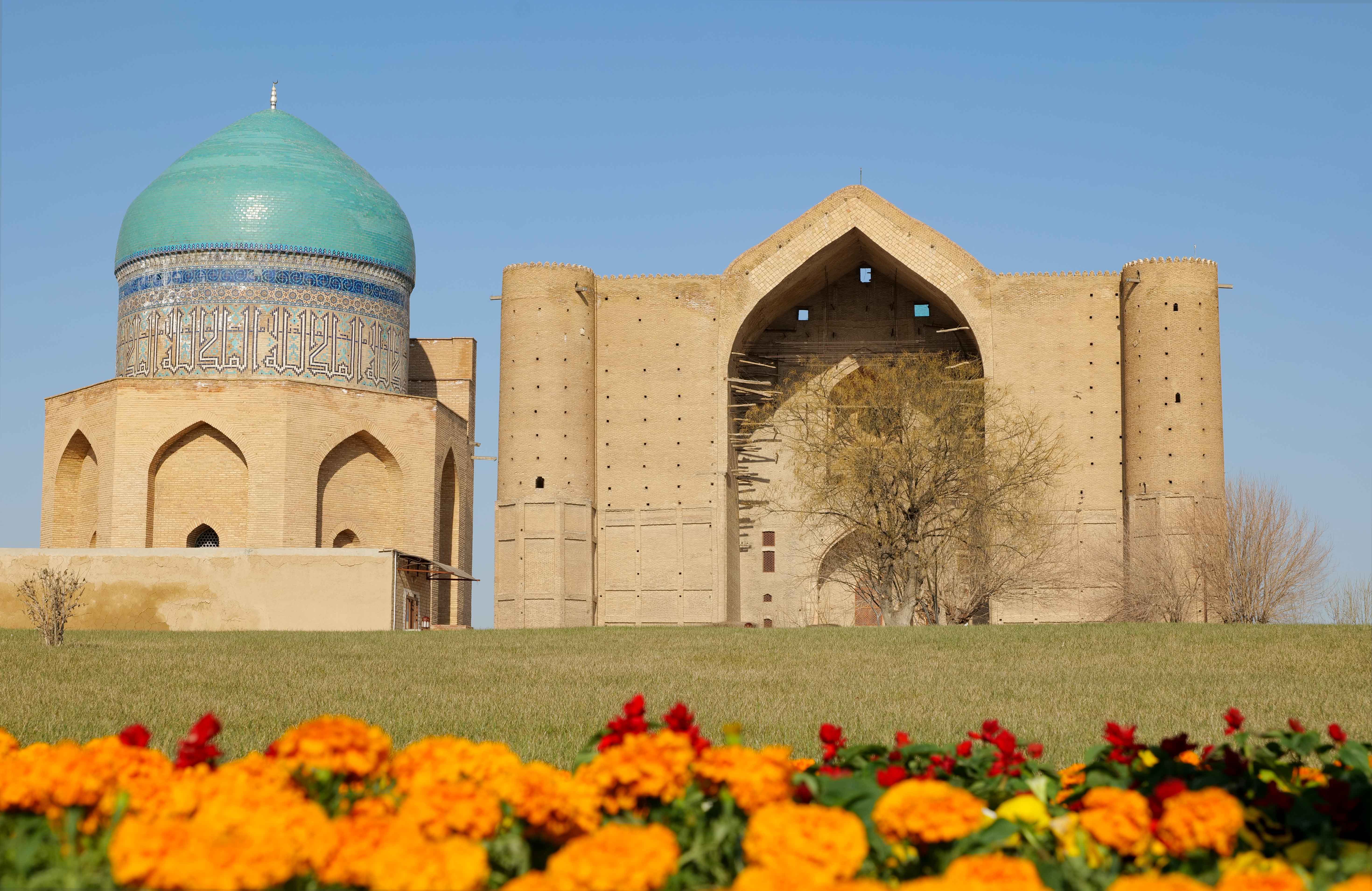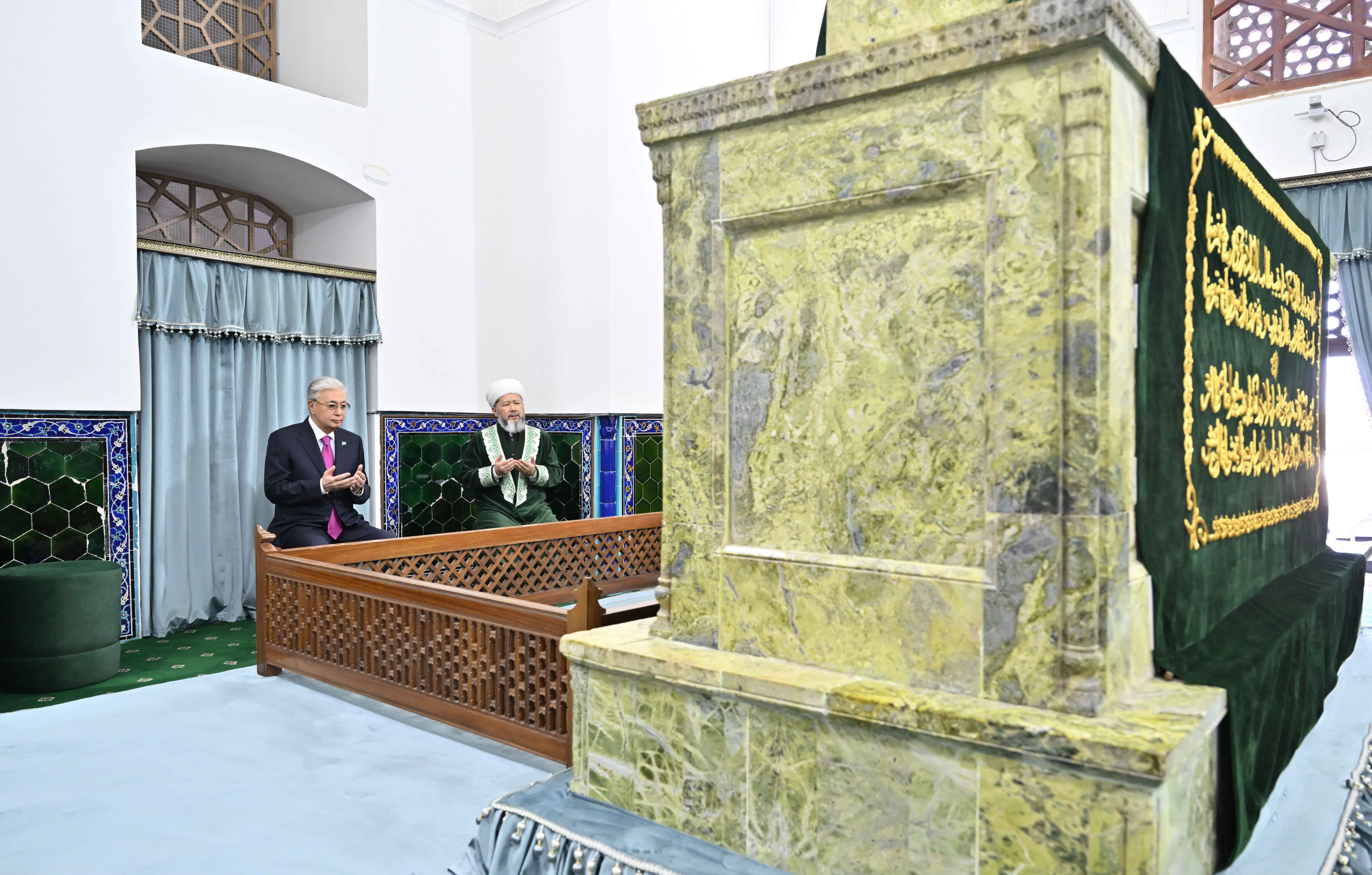Визит Президента в регион начался с посещения одной из величайших духовных и историко-культурных святынь тюркского мира – мавзолея Ходжи Ахмеда Яссауи, внесенного в список Всемирного наследия ЮНЕСКО.