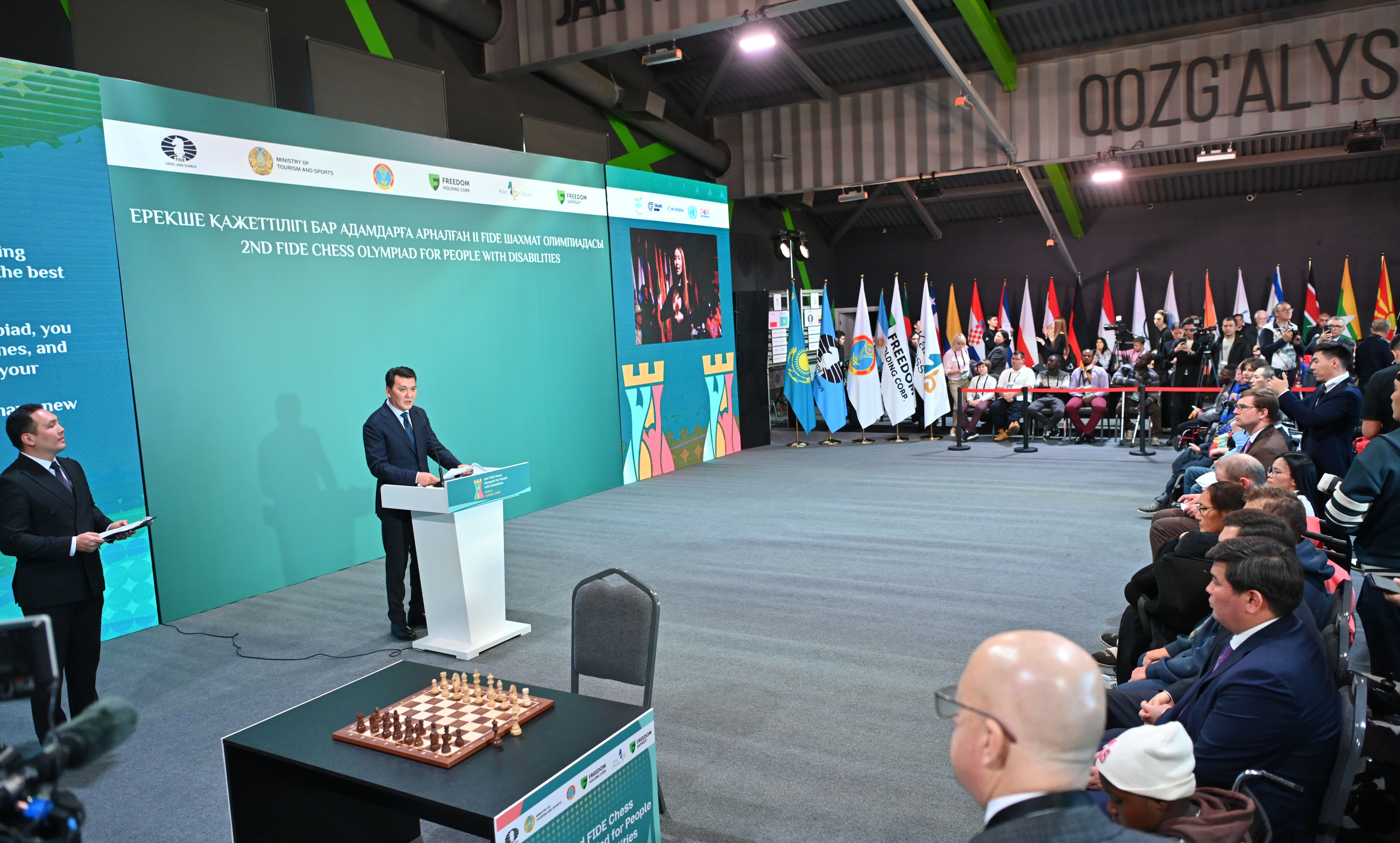 Государственный советник Ерлан Карин принял участие в церемонии открытия второй шахматной олимпиады ФИДЕ среди людей с ограниченными возможностями.